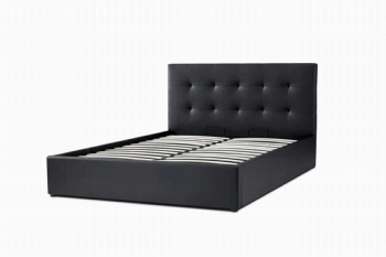 Tweepersoonsbed met kunstlederen bekleding, het frame is vervaardigd uit een combinatie van MDF en spaanplaat. De lattenbodem is voorzien van veren en een handgreep waardoor je deze omhoog kunt doen om hier bijvoorbeeld je beddengoed op te bergen. Het bed wordt geleverd inclusief lattenbodem.