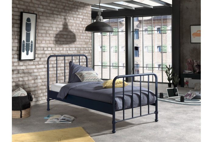 Dit metalen industriële kinderbed is afgewerkt met een mat blauwe poederlak. Geschikt voor elke matras van 90×200 cm. Met dit bed heb je een hedendaagse look die in combinatie met zijn degelijke design nog lang meegaat. Het bed wordt geleverd inclusief lattenbodem en is goed te combineren met de rest van deze serie!