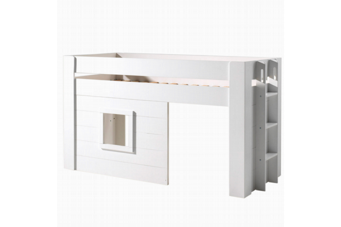 Dit bed is gemaakt van wit gelakt MDF en wordt geleverd incl. basic vuren lattenbodem en zonder matras. Deze dien je zelf apart bij te bestellen.De hoogslaper maakt je kinderkamer door de deuropening, de ladder en het raam tot een echt speel/slaappaleisje. Bijpassende gordijntjes dienen apart te worden bijbesteld.