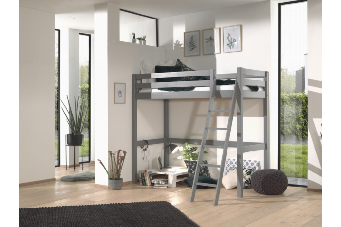 Met dit grote ben je verzekerd van een efficiënt ruimtegebruik en door zijn valbeveiliging van een veilige nachtrust. In het bed past een matras van 90×200 cm. De lattenbodem is inclusief. De ruimte onder het bed is goed te gebruiken voor een bureau, kast of zit plek. De ladder loopt schuin en heeft brede treden, deze kan zowel links als rechts gemonteerd worden. Het bed is vervaardigd uit Scandinavisch grenen en biedt voldoende stabiliteit. Bekijk ook de bijpassende items uit deze collectie!
