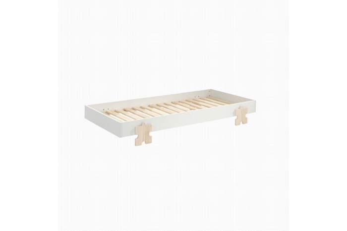 Met dit zeer handige stapelbare bed heb je altijd voldoende slaapplaatsen. Het bed is vervaardigd uit een combinatie van massief grenen en MDF en is wit gelakt. Het bed is gemakkelijk stapelbaar waarbij de matrassen kunnen blijven liggen. De bedden zijn inclusief lattenbodem. De massieve poten zijn in de vorm van een puzzelstuk.
