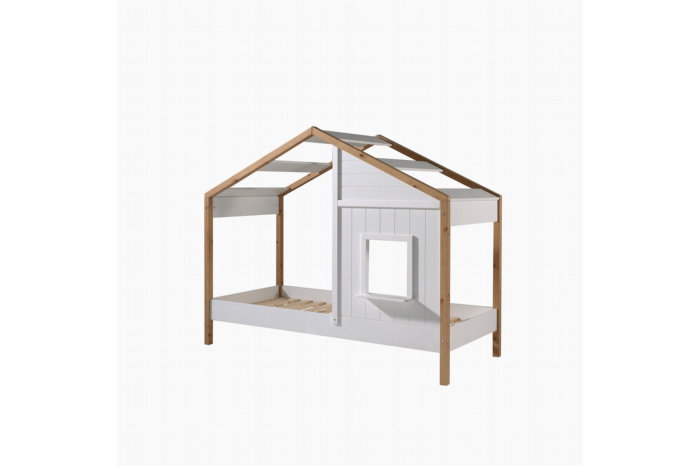 Met dit prachtige huisbed is je kinderkamer in één keer omgetoverd tot een knusse gezellige plek! Door het bed met de achterkant tegen een muur te plaatsen creëer je aan beide zijden een uitvalbeveiliging en is je kind verzekerd van een veilige nacht. Het bed is vervaardigd uit een combinatie van MDF en massief grenen en is afgelakt in wit en natuur. Dit bed wordt geleverd inclusief lattenbodem.