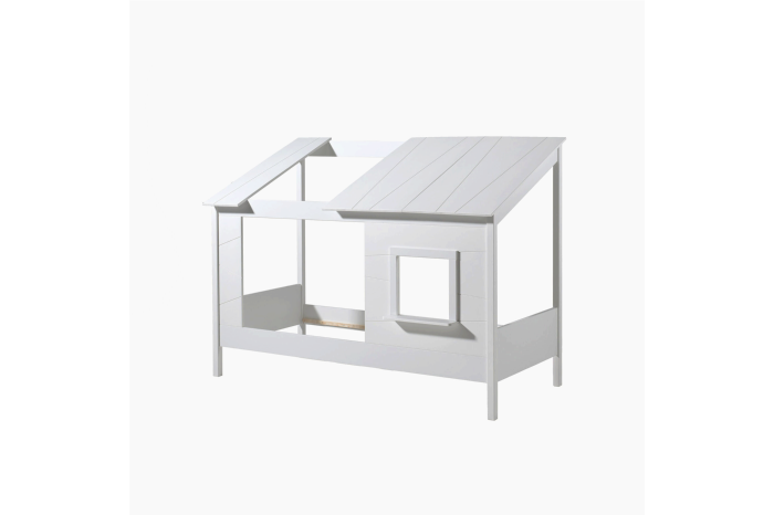 Dit stabiele bed heeft door zijn gefreesde lijnen de looks van een boomhut. Het raam aan de rechterkant is 35 x 35 cm en heeft een vensterbank. Door de verlaging aan de linkerkant is het makkelijk in- en uitstappen. Het bed is vervaardigd uit een combinatie van massief grenen en MDF en is wit gelakt. Het bed wordt geleverd zonder lattenbodem en matras. Het bed is geschikt voor een lattenbodem en matras van 90×200 cm.