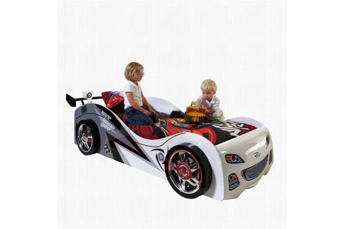 Dit sportieve autobed heeft het model van een stoere witte race-auto. De zwart-wit print met stoere wielen en een racevleugel die perfect past bij een kind die van raceauto†™s houdt, zorgt voor een gezellige tienerkamer. Het bed heeft een verhoogde rand die ervoor zorgt dat je kind veilig in bed kan slapen. Het bed is vervaardigd uit hoogwaardig MDF. In het bed past elke matras van 90 x 200cm uit de collectie van huisenthuis.nl.