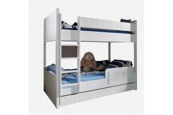 Dit luxe, robuuste stapelbed wordt geleverd incl. lattenbodems en zonder matrassen. Het heeft een rechte trap die aan de linkerkant van het bed is gepositioneerd en heeft rechtsboven een breed uitvalhek voor extra veiligheid voor je kind. Het is vervaardigd uit wit gelakt MDF. In het bed past elke matras van 90 x 200cm uit de collectie van huisenthuis.nl. Deze dient U apart bij te bestellen. Het bed kan ook nog worden uitgebreid met een extra bedlade voor een derde slaapgast of met een bedbeveiliging voor de onderste slaper. Deze dien je wel apart bij te bestellen.