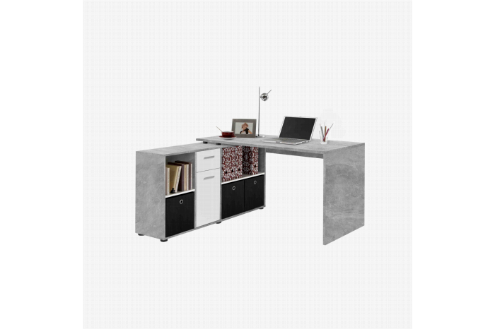 Het bureau kan in 4 verschillende opstellingen opgebouwd worden, is vervaardigd uit een stevige spaanplaat en afgewerkt met een sterke melamine. Door zijn speelse opstelling is dit bureau goed te plaatsen in zowel de woonkamer, slaapkamer als studeerkamer. Gemakkelijk te monteren door middel van de bijgeleverde montagehandleiding. Achter de deur bevindt zich 1 verstelbare legplank. In de bureaukast is voldoende opbergruimte voor bijvoorbeeld mappen, boeken en andere kantoorartikelen. Verkrijgbaar in meerdere kleuren.
