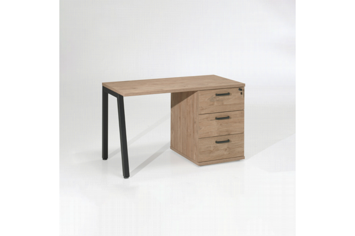 Met dit compacte bureau kun je in elke ruimte in je huis werken! Voldoende opbergruimte voor al je spullen middels de 3 laden, deze zijn zowel links als rechts te plaatsen. Het bureaublad is vervaardigd uit een degelijke kwaliteit spaanplaat en afgewerkt met een sterke melamine. Door zijn ladekast in combinatie met zijn schuine poten heeft dit bureau een actuele hedendaagse look. Verkrijgbaar in meerdere kleuren.