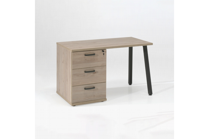 Met dit compacte bureau kun je in elke ruimte in je huis werken! Voldoende opbergruimte voor al je spullen middels de 3 laden, deze zijn zowel links als rechts te plaatsen. Het bureaublad is vervaardigd uit een degelijke kwaliteit spaanplaat en afgewerkt met een sterke melamine. Door zijn ladekast in combinatie met zijn schuine poten heeft dit bureau een actuele hedendaagse look. Verkrijgbaar in meerdere kleuren.