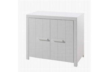 Deze handige commode kan geplaatst worden in elke kamer. De kast is vervaardigd uit een combinatie van MDF en massief grenen. De kast is afgewerkt met een witte lak. Achter de deuren bevindt zich 1 legplank. Leuk te combineren met de rest van de meubelen uit deze serie.