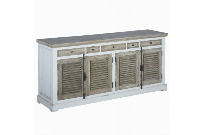 Het dressoir Amanda is voorzien van 4 deuren met daarachter handige opbergvakken en 5 laden. De deuren zijn voorzien van sierlijke espagnolet sluitingen.Kleur: C121 Grey White WashLevertijd: 2 - 6 weken