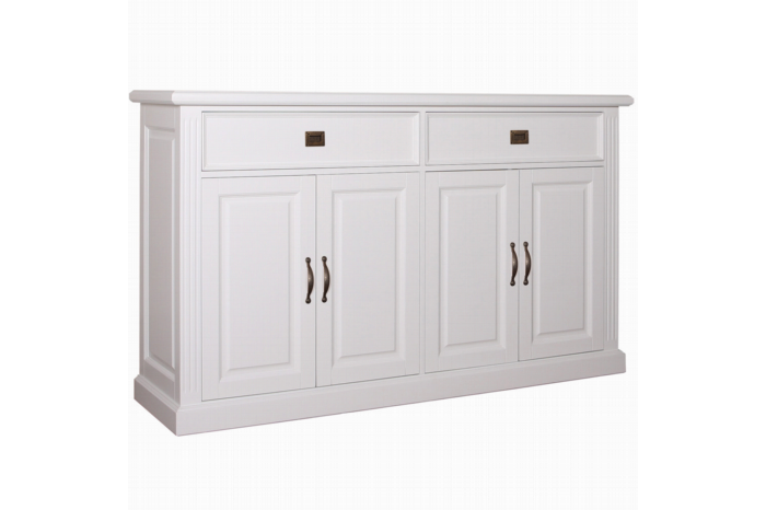 Dit landelijke dressoir is opgedeeld in 2 grote opbergvakken voorzien van openslaande deuren. Daarnaast heeft het 4 handige laden met softclose. Het dressoir is extra hoog uitgevoerd, 110cm.U heeft de mogelijkheid om het dressoir met een antiek finish af te laten werken, de randen worden licht opgeschuurd en bewerkt zodat er een antiek uitstraling ontstaat.Stel u eigen dressoir samen door u eigen kleur te kiezen en het dressoir te voorzien van het beslag naar u keuze.