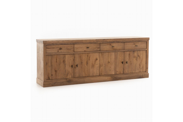 Stoere robuuste kast uit de collectie Country, voorzien van 4 handige opbergvakken en 4 laden.Verkrijgbaar in diverse afmetingen, bovendien is het mogelijk om een opzetkast te plaatsen op het dressoir.Maatwerk mogelijk.