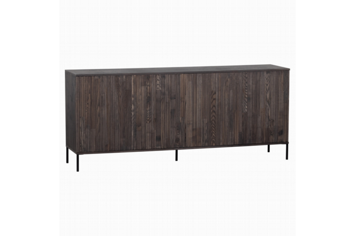 WOOOD Dressoir New Gravure Bruin - 200x85x46 cmHet New Gravure dressoir van WOOOD Exclusive is een modern meubelstuk met nadruk op de deuren. De kast is gemaakt van essenhout in een espresso bruine kleur en heeft een plissÉ patroon dat zorgt voor een sfeervol lijnenspel. Hierdoor heeft het dressoir een elegante uitstraling. Het is een stijlvolle opberger van Nederlandse bodem.