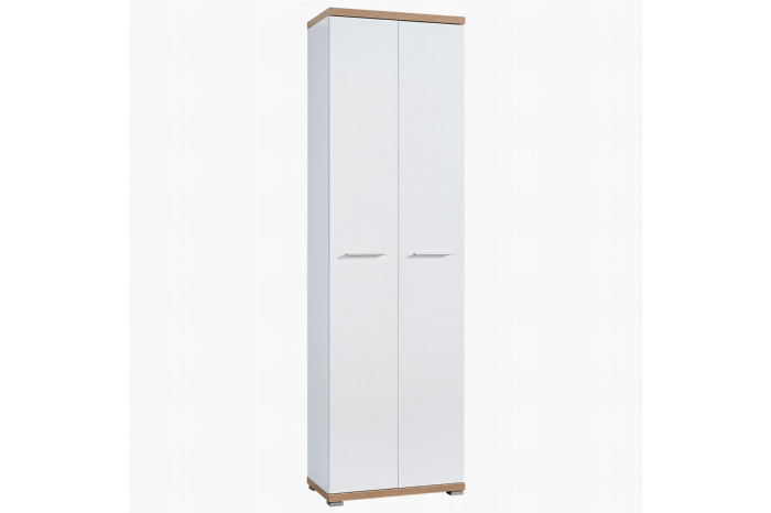 In deze stijlvolle 2-deurs garderobekast in wit met repro eiken boven- en onderblad, liggen achter de deuren 2 verstelbare legplanken. Een uittrekbare kledingstang zorgt ervoor, dat uw kleding netjes weg hangt.