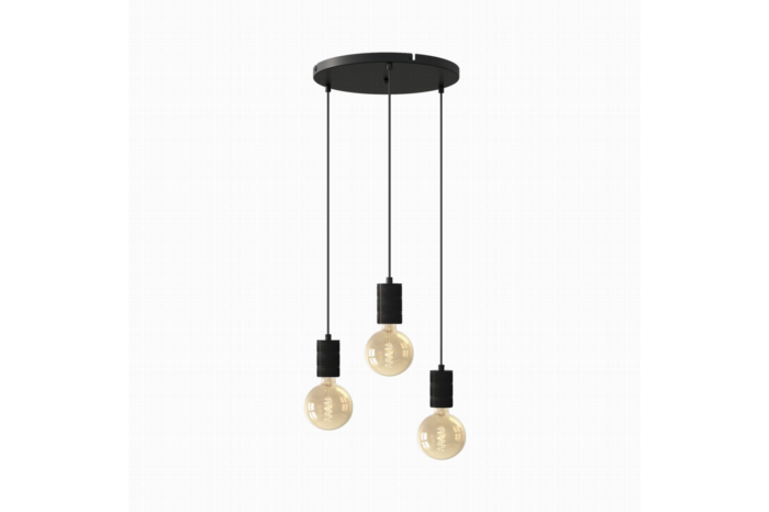 De Calex Retro hanglamp is een moderne zwarte metalen lamp met een diameter van 40 cm. Het verlichtingsmerk Calex heeft deze lamp ontworpen met een strakke vormgeving en 3 pendels die hangen aan luxe stoffen elektra snoeren. Bij de pendels worden extra ringen geleverd om de fitting van de lichtbron te verbergen voor een extra strakke afwerking. De hoogte van elke pendel kan maximaal 200 cm zijn. De lichtbron of bol die je aan de pendels hangt, maakt de look van de lamp compleet. Hierdoor is de Calex Retro geschikt voor veel verschillende woonstijlen en kamers. Het is goed om te weten dat de hanglamp gemaakt is van zwart metaal.