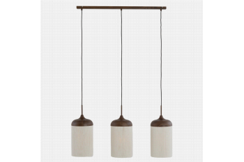Belangrijk om te weten:afmeting 90x22 cm (BxD)kappen doorsnede22 cm en 32 cm hoogcreme kleur touwhoutlook metaal3 x E27 / max 40W