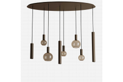 Hanglamp Galaxy rond 3 lichts met spot Brons Sfeervolle hanglamp Galaxy ovaal, LB555/3+1R-BR. De lamp heeft DRIE lichtpunten voor E27 LED lampjes en een lichtpunt waar een GU10 LED spotje in kan.€ 789,00
