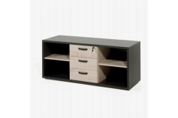 • Bijzetkast Spinoza Deze lage bijzetkast uit de kantoorcollectie Spinoza heeft een trendy uitstraling door de afwerking in lichtkastanje hout met zwart accenten.
