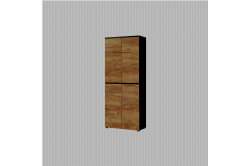 • Hoge kantoorkast Kreta De kantoorkast Kreta-L heeft ook een a-symetrische vorm met een speelse indeling. Op de foto is rechts een deur waarachter 3 bergvakken en daarboven een open vak en een kleine deur met een bergvak.
