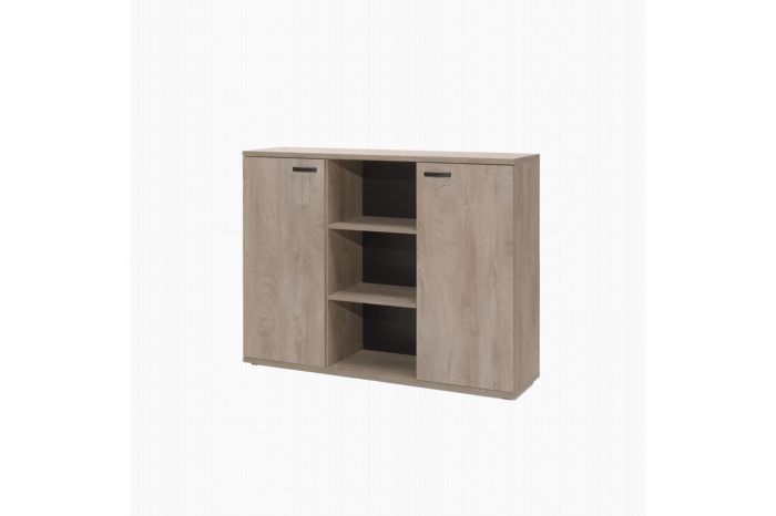 Met dit dressoir heb je voldoende ruimte voor al je (kantoor)artikelen. Door zijn warme uitstraling gemakkelijk te combineren met elk interieur. Bovenop het dressoir kun je enkele leuke accessoires kwijt. Achter elke openslaande deur bevinden zich 2 verstelbare legplanken. De kast is vervaardigd uit een stevige spaanplaat en afgewerkt met een sterke melamine. Bekijk ook de andere meubelen uit deze serie en richt je kantoor in één keer helemaal in!