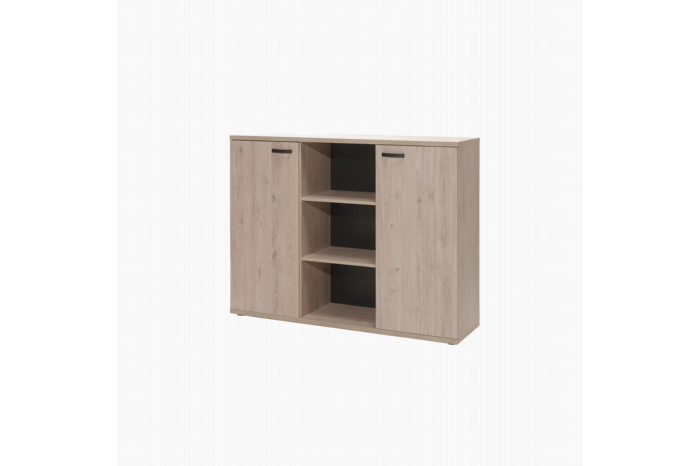 Met dit dressoir heb je voldoende ruimte voor al je (kantoor)artikelen. Door zijn warme uitstraling gemakkelijk te combineren met elk interieur. Bovenop het dressoir kun je enkele leuke accessoires kwijt. Achter elke openslaande deur bevinden zich 2 verstelbare legplanken. De kast is vervaardigd uit een stevige spaanplaat en afgewerkt met een sterke melamine. Bekijk ook de andere meubelen uit deze serie en richt je kantoor in één keer helemaal in!