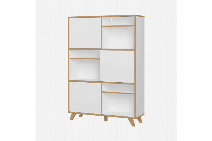 Met deze Scandinavische kantoorkast haal je een echte eyecatcher in huis! De schuifpanelen kun je naar links of rechts schuiven en zo een speels effect creëren. De kast is afgewerkt met een sterke melamine en is voorzien van ABS-kantafwerking waardoor deze tegen een stootje kan! Deze serie meubelen is van Duitse kwaliteit en heeft daarmee een lange levensduur. Eenvoudig te monteren met behulp van een duidelijke montagehandleiding. Leuk te combineren met de andere items uit deze serie!