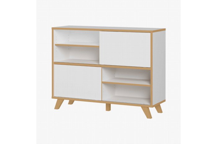 Met deze Scandinavische kantoorkast haal je een echte eyecatcher in huis! De schuifpanelen kun je naar links of rechts schuiven en zo een speels effect creëren. De kast is afgewerkt met een sterke melamine en is voorzien van ABS-kantafwerking waardoor deze tegen een stootje kan! Deze serie meubelen is van Duitse kwaliteit en heeft daarmee een lange levensduur. Eenvoudig te monteren met behulp van een duidelijke montagehandleiding. Leuk te combineren met de andere items uit deze serie!