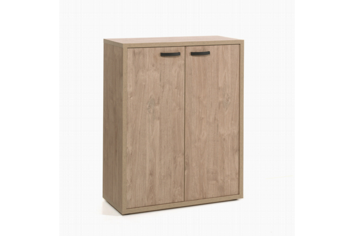 Deze halfhoge kast uit de kantoorcollectie Edison heeft een warme uitstraling door de afwerking in goudeiken. Door de strakke zwarte handvatten heeft het meubel toch een moderne look. De platen zijn afgewerkt met een sterk krasvast melamine toplaag. Achter de twee openslaande deuren bevinden zich twee planken om uw spullen op te bergen. In combinatie met de andere kasten van de kantoorcollectie Edison kunt u een mooie wandcombinatie maken.
