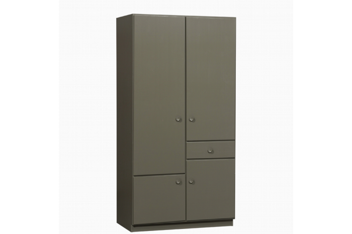 Kledingkast Alfie heeft een tijdloos design met een opvallend retro tintje. Dat is goed te zien aan de deuren met verschillend formaat en de speelse vorm handgrepen. De plint van 8 cm hoog zorgt voor een zwevende look. Deze kast, van interieurmerk WOOOD, is gemaakt van FSC-gecertificeerd grenenhout. Het grenen heeft een gladde en nette afwerking met een milieuvriendelijke, watergedragen lak. Kledingkast Alfie heeft een prachtige aardse groentint die goed met zowel lichte, als donkere interieurs combineert en perfect past in diverse woonstijlen.Indeling:Met 4 ruime vakken en een handige lade, biedt kledingkast Alfie volop opbergruimte voor je kleding. Het grootste vak is 153 cm hoog en voorzien van een kledingroede. De lade is 51,1x16,6 cm en 48,6 cm diep. Het onderste vak links is 42 cm hoog en het rechtervak is 54 cm hoog. Beide hebben ze er ÉÉn legplank in. Het grote vak aan de rechterkant is 114 cm hoog en heeft er 2 legplanken in. Iedere plank heeft een draaggewicht van 15 kg.Levering & montage:Kledingkast Alfie wordt geleverd in 3 pakketten wordt geleverd. Het monteren doe je met 2 personen en deze kast wordt liggend gemonteerd. Houd rekening met extra hoogte voor wanneer je de kast omhoog gaat kantelen. Zorg voor het juiste gereedschap en volg vervolgens stap voor stap de gebruiksaanwijzing. Het is aangeraden om de valpreventie te monteren om ongelukken te voorkomen. Plaats voor het beschermen van harde vloeren viltglijders aan de onderzijde van de poten, dit voorkomt beschadigingen.
