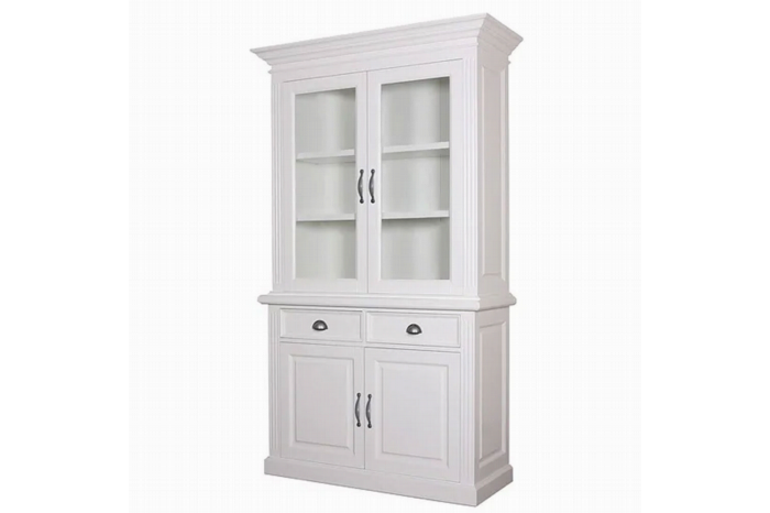 Landelijke buffetkast, voorzien van 4 openslaande deuren en 2 laden. De kast is voorzien van een sierlijke koof.U heeft de mogelijkheid om de kast met een antiek finish af te laten werken, de randen worden licht opgeschuurd en bewerkt zodat er een antiek uitstraling ontstaat.Stel u eigen kast samen door u eigen kleur te kiezen, zo is het mogelijk om de binnenkant en de legplanken een andere kleur te geven dan de buitenzijde. U heeft ook de keuze uit diverse soorten beslag.