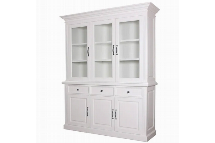 Sierlijke buffetkast, voorzien van engelse koof wat zorgt voor de landelijke uitstraling. De kast is voorzien van 6 openslaande deuren en 3 laden.U heeft de mogelijkheid om de kast met een antiek finish af te laten werken, de randen worden licht opgeschuurd en bewerkt zodat er een antiek uitstraling ontstaat.Stel u eigen kast samen door u eigen kleur te kiezen, zo is het mogelijk om de binnenkant en de legplanken een andere kleur te geven dan de buitenzijde. U heeft ook de keuze uit diverse soorten beslag.