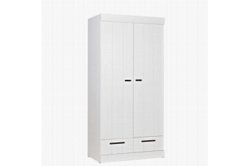 De Connect 2-deurs kast heeft een breedte van 94 cm, een diepte van 53 cm en een hoogte van 195 cm. De kast is gemaakt van wit grenenhout met zichtbare nerven en knoesten, wat het karakter geeft. De Connect kledingkast moet nog gemonteerd worden. Door meerdere van deze kasten naast elkaar te zetten en te koppelen, kan een mooie kastenwand gecreëerd worden met veel opbergruimte.