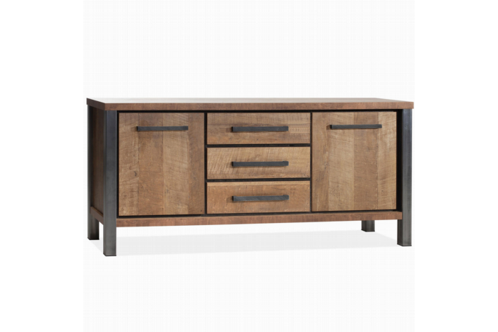 Robuust stoer dressoir uit de collectie Den Haag. Het dressoir is voorzien van 2 deuren met daarachter de nodige opbergruimte en 3 handige opbergladen in het midden van het dressoir.Programma Den Haag is zowel kras- als slijtvast en voorzien van soft-close de meubelen zijn daardoor erg praktisch in gebruik en onderhoud.