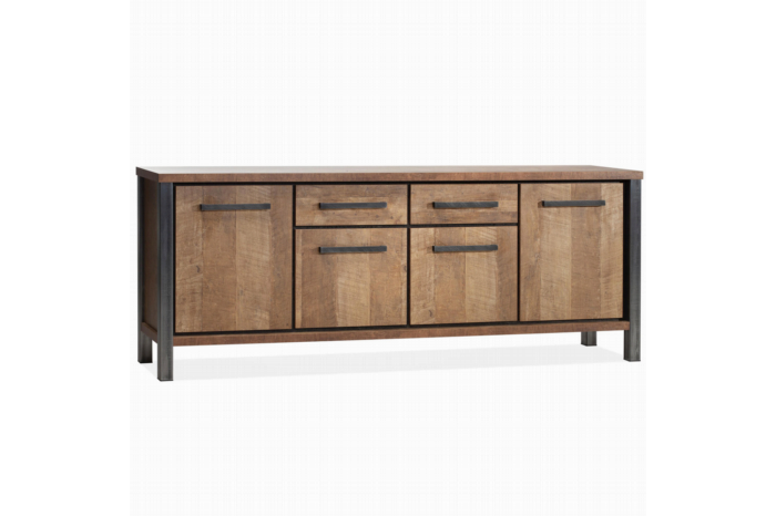 Robuust stoer dressoir uit de collectie Den Haag. Het dressoir is voorzien van 4 deuren met daarachter de nodige opbergruimte en 2 handige opbergladen in het midden van het dressoir.Programma Den Haag is zowel kras- als slijtvast en voorzien van soft-close de meubelen zijn daardoor erg praktisch in gebruik en onderhoud.