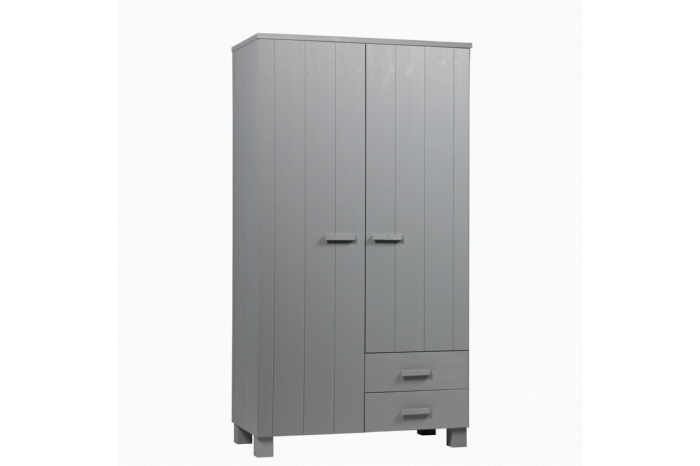 De kledingkast Dennis is een hang/leg kast van Nederlandse afkomst. Het is een product van het merk WOOOD, dat bekend staat om hun hoogwaardige houten meubelen. Dennis is gemaakt van geborsteld grenen met een V-groef afwerking en is gelakt in de kleur betongrijs. Deze 2-deurskast heeft een stoer uiterlijk dat perfect past in een kinder- of tienerkamer, maar ook goed past in een volwassen interieur. Een handige tip is om 2 dezelfde kasten naast elkaar te plaatsen voor maximale opbergruimte.