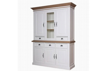 Elegante buffetkast in landelijke stijl. De kast is herkenbaar door de eiken accenten.U heeft de mogelijkheid om de kast met een antiek finish af te laten werken, de randen worden licht opgeschuurd en bewerkt zodat er een antiek uitstraling ontstaat.Stel u eigen kast samen door u eigen kleur te kiezen, zo is het mogelijk om de binnenkant en de legplanken een andere kleur te geven dan de buitenzijde. U heeft ook de keuze uit diverse soorten beslag.