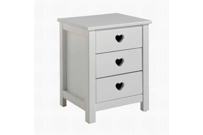 Dit nachtkastje met zijn romantishe look heeft drie lades. Het is gemaakt van hoogwaardig wit gelakt MDF.
