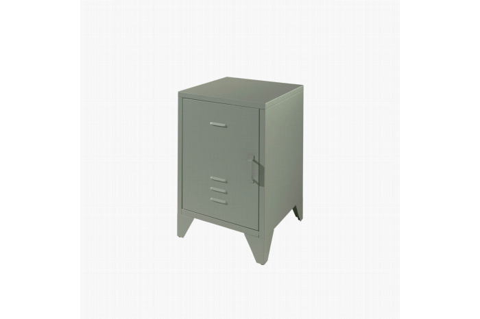 Dit metalen industriële nachtkastje is afgewerkt met een mat groene poederlak. Achter het deurtje bevindt zich 1 legplank om al je spullen in kwijt te kunnen. Verkrijgbaar in verschillende kleuren en goed te combineren met de rest van deze serie.