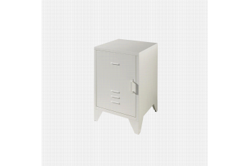 Dit metalen industriële nachtkastje is afgewerkt met een mat witte poederlak. Achter het deurtje bevindt zich 1 legplank om al je spullen in kwijt te kunnen. Verkrijgbaar in verschillende kleuren en goed te combineren met de rest van deze serie.