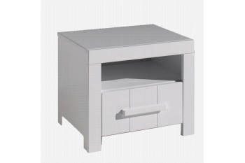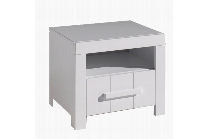 Dit nachtkastje heeft een lade met een brede handgreep en daarboven een open vak. Het is vervaardigd uit hoogwaardig MDF met massief grenen in wit gelakt.Ruimte volop in de lade en het open vak.