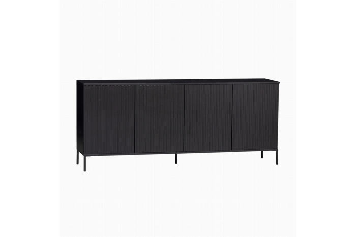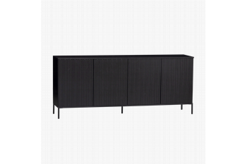 WOOOD DRessoir New Gravure Zwart - 200x85x46 cmHet New Gravure dressoir van WOOOD Exclusive is een modern meubelstuk met nadruk op de deuren. De kast is gemaakt van zwart grenen en heeft een plissÉ patroon dat zorgt voor een sfeervol spel van lijnen. Hierdoor heeft dit strakke en stevige meubelstuk een elegante uitstraling. Het dressoir is een stijlvolle opbergoplossing van Nederlandse makelij.