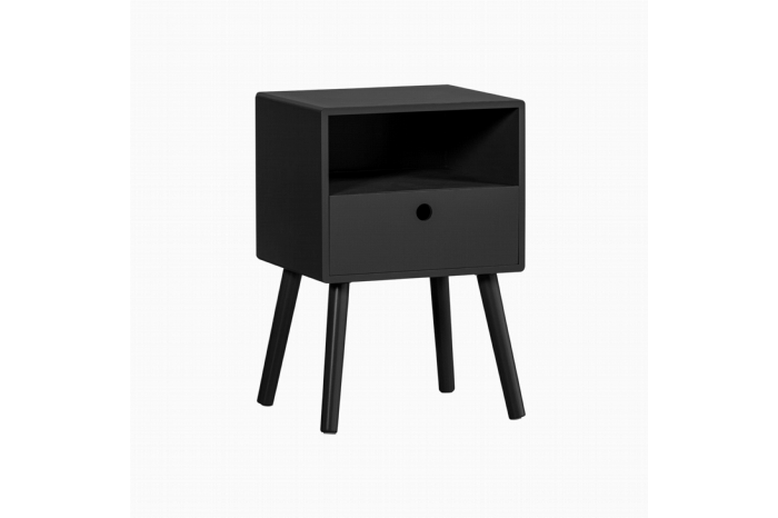 Het Ozzy nachtkastje van woonmerk WOOOD heeft een eenvoudig design en is toch opvallend stijlvol. Het zwarte kastje heeft een open vak en een handige lade. De look wordt afgemaakt met luchtige hoge poten. Het gebruik van afgelakt MDF hout, zorgt ervoor dat het nachtkastje kalmte uitstraalt en zich gemakkelijk voegt in jouw woonstijl. Nachtkastje Ozzy is een perfecte musthave voor in een slaap- of woonkamer.Indeling:Nachtkastje Ozzy heeft bovenaan een open vak van 33x29,5 cm en is 12 cm hoog. Daaronder zit een lade van 32x28 cm en 12 cm diep. De poothoogte is 24 cm en het kastje heeft een draaggewicht van 15 kg.Levering & montage:Nachtkastje Ozzy wordt als bouwpakket geleverd en moet nog gemonteerd worden. Het is eenvoudig te monteren aan de hand van de bijgeleverde montagehandleiding.