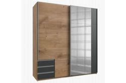Drie-deurs draaideurskast Andante-W3Deze royale driedeurs-draaideurkast heeft bovenin achter alle deuren een legplank en daaronder hangt een kledingroede. Achter de 2 linkerdeuren ligt onderin nogmaals een legplank.
