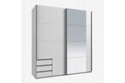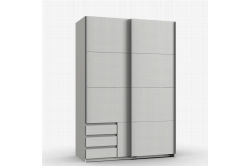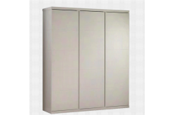 Driedeurskast Luuk-WDeze 3-deurs-kledingkast heeft achter de 2 linkerdeuren links boven een legpank, waaronder een kledingroede, achter de rechter deur bevinden zich 4 legplanken.