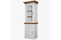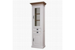 Ermelo Vitrinekast linksDoor de eiken accenten krijgt deze vitrinekast een stoere uitstraling. Daarnaast is de kast ook praktisch zo is behalve de vitrinedeur ook een gesloten deur en lade voor extra opbergruimte.