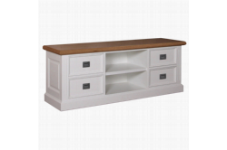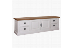 Ermelo TV-dressoir 200cmLandelijk TV-dressoir, uitgevoerd met een eiken blad. Dit dressoir is geheel af te sluiten waardoor niet alle audio-apparatuur in het zicht is. Ook voorzien van 4 handige laden.