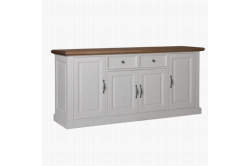 Ermelo Dressoir 185cmLandelijk dressoir uit de serie Ermelo. Het dressoir is extra hoog uitgevoerd, 110cm. Voorzien van 4 deuren en 2 extra brede laden.