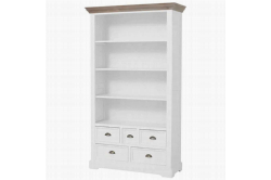 Fleur Boekenkast BreedHet romantische en landelijke meubelprogramma Fleur bestaat uit diverse trendy, witte meubelen met vergrijsde houten bladen.