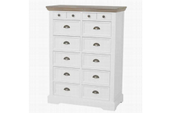 Fleur Ladenkast 88cmHet romantische en landelijke meubelprogramma Fleur bestaat uit diverse trendy, witte meubelen met vergrijsde houten bladen.De ladenkast is voorzien van maar liefst 14 handige opbergladen.