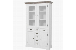 Fleur Vitrinekast 115cmHet romantische en landelijke meubelprogramma Fleur bestaat uit diverse trendy, witte meubelen met vergrijsde houten bladen.De vitrinekast voorzien van diverse handige opbergladen en kasten.